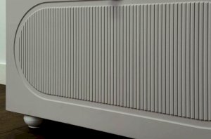 Корпус комода выполнен из ЛДСП толщиной 16 мм, фасады изготовлены из МДФ в плёнке ПВХ. Фасады с фрезеровкой подчёркивают аккуратный внешний вид изделия. Оригинальные круглые ручки и опоры придают комоду современный и лёгкий характер, делая его гармоничной частью детского интерьера.